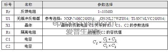 RS:將反向器的輸出與晶體隔離開來,防止寄生高頻振蕩,以便獲得良好的波形。通過選擇大約等于容抗的值(RS≈XC2)可以獲得可以接受的結果。